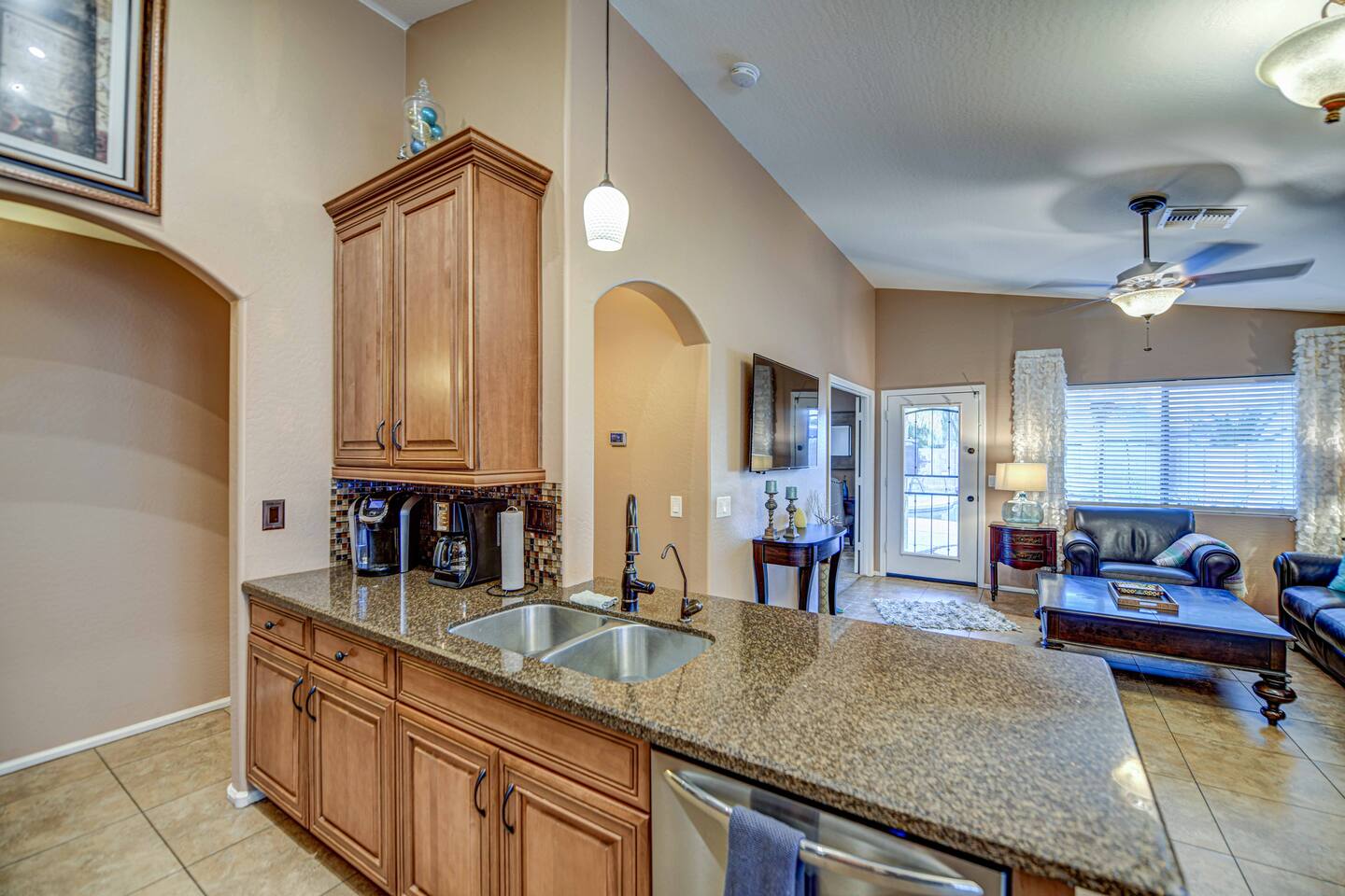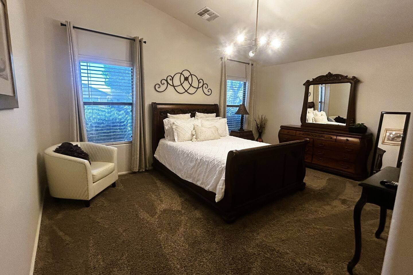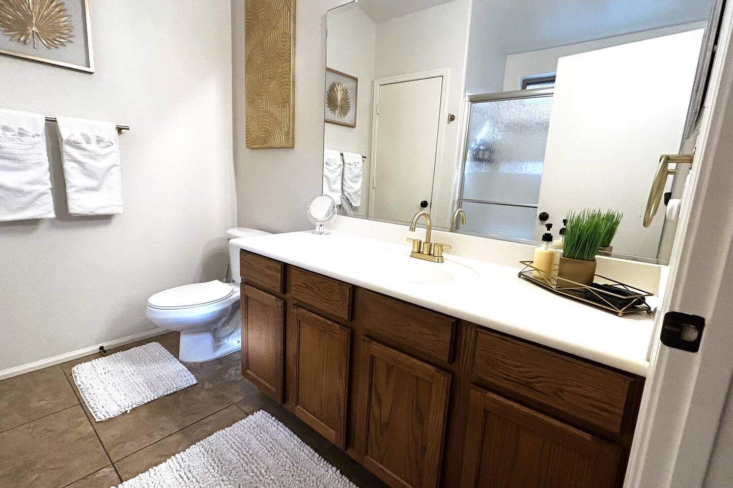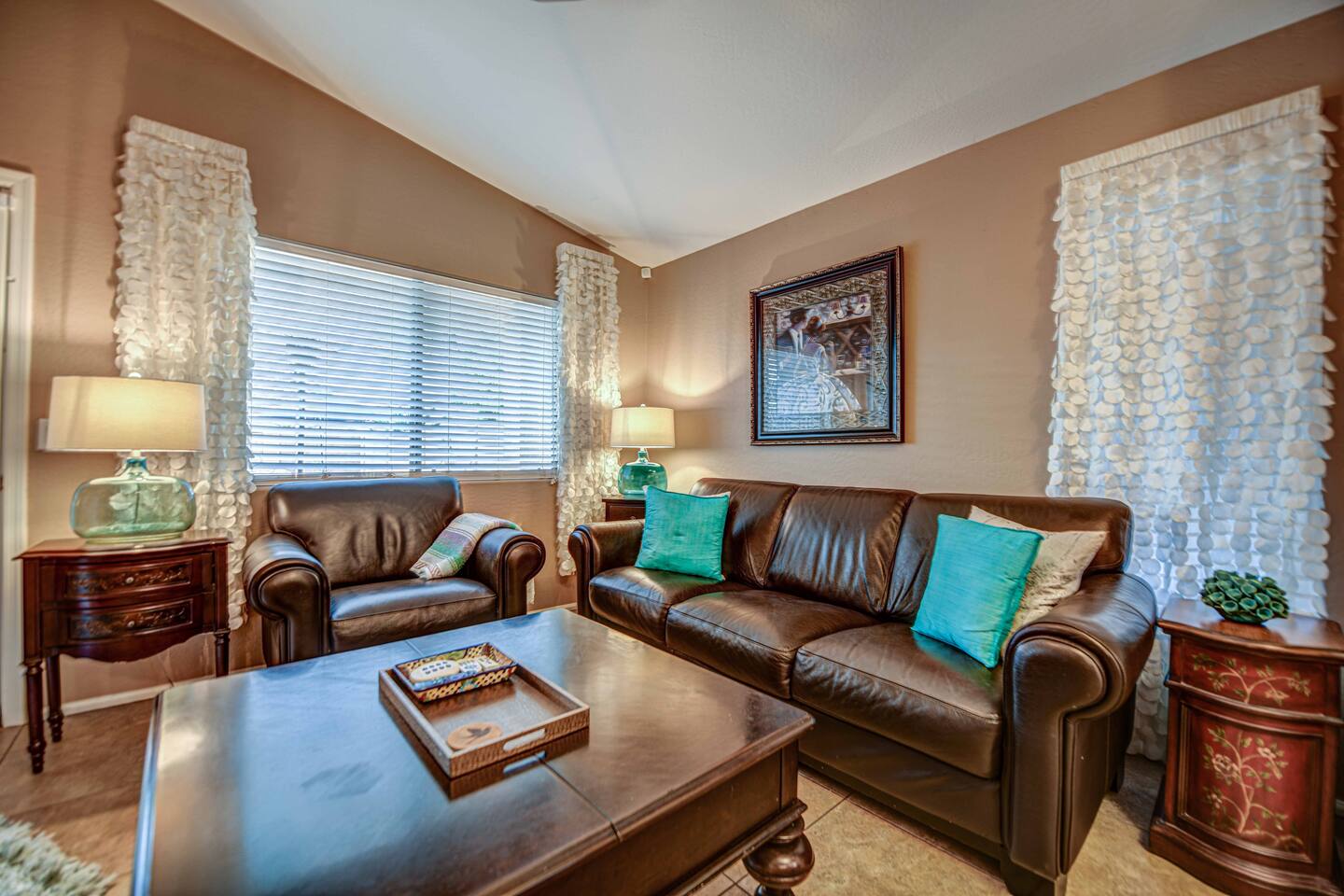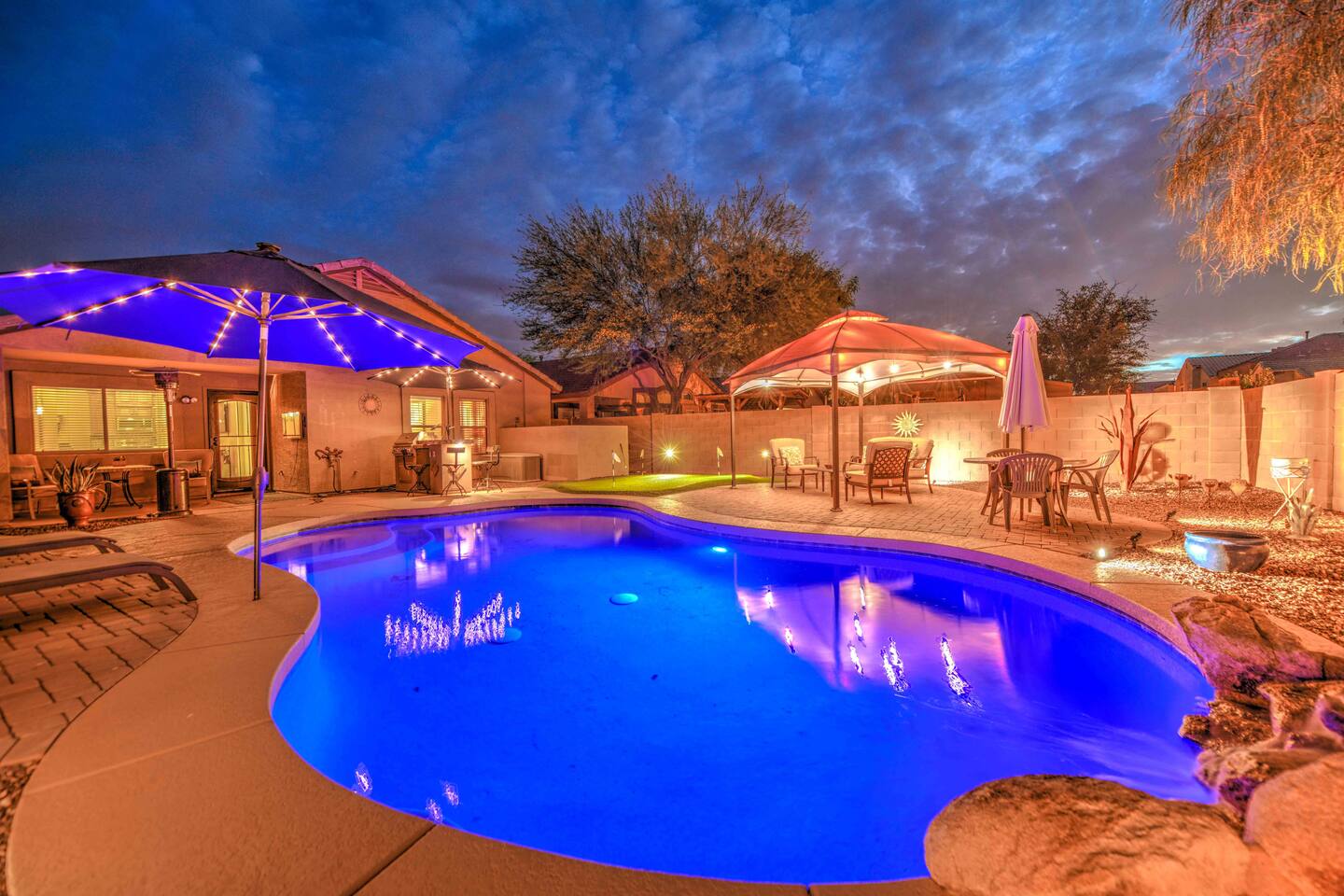 Welcome to Desert Diamond Escape! Your own slice of paradise in San Tan Valley, AZ! Our impeccably furnished 1500 square foot retreat, boasting three cozy bedrooms and two luxurious bathrooms. Dive into relaxation in our 12,000 gallon salt water pool complete with a soothing waterfall. Unwind in our outdoor oasis featuring a charming gazebo, BBQ, lounge sets, putting green. Fully stocked kitchen, 4 TVs, fiber internet. Don't miss this exceptional experience! - Pool heat is an additional fee.